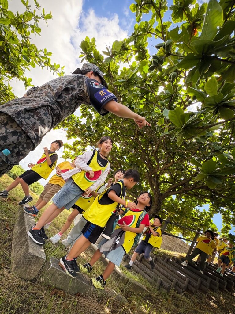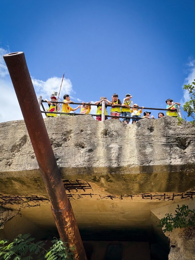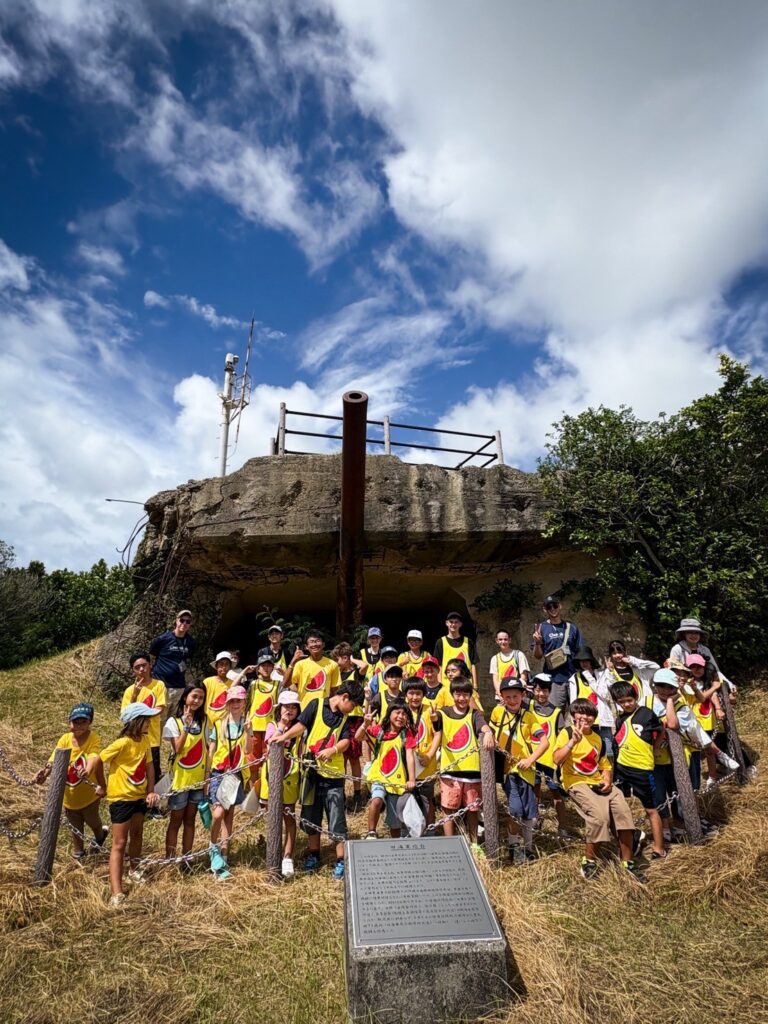 最後に訪れたのは、沖縄戦で使われた 小禄海軍砲台跡地。那覇基地を見渡せる場所で、当時の戦いの痕跡を前に、子どもたちはしばし静かに自衛隊広報担当の隊員さんの話に耳を傾けました。ワクワクの一日の中で、「平和の大切さ」を改めて心に刻む時間となりました。