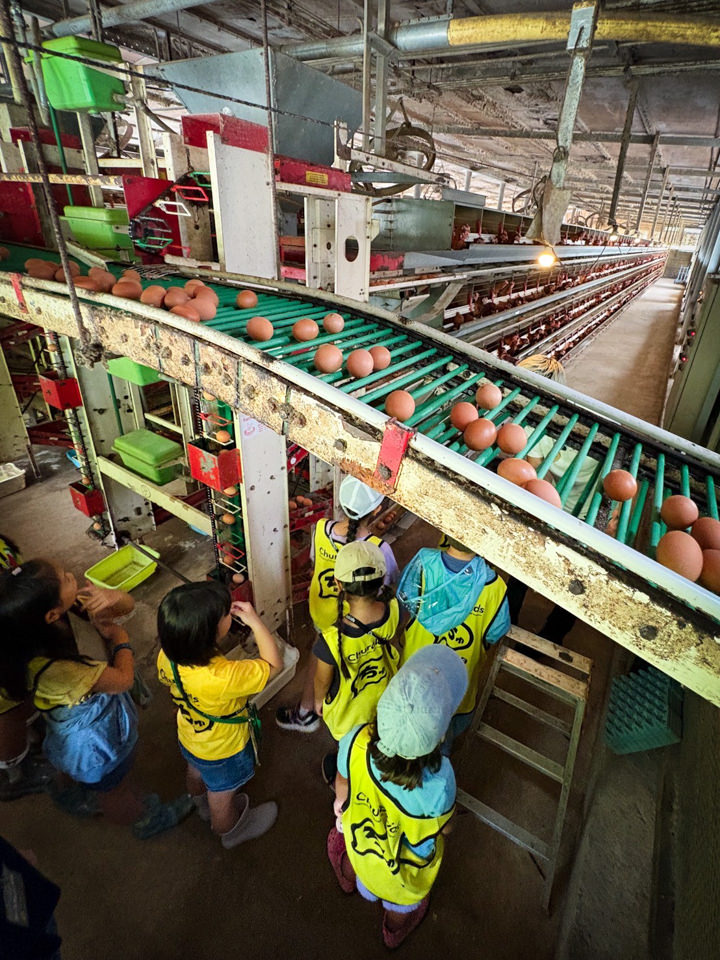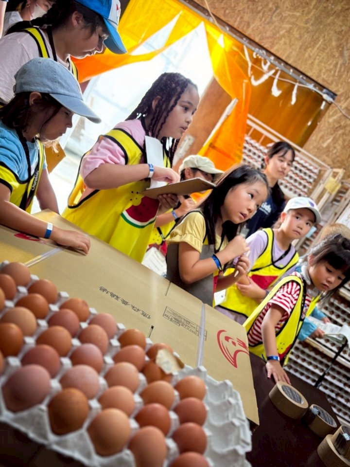 私たちの食卓に並ぶ卵には、鶏の命と大切な働きがあります。子どもたちは鶏舎を見学し、約2万羽の鶏がどのように育てられているのかを実際に目にしました。餌や卵がベルトコンベアで運ばれていく様子に、驚きの声もあがりました!