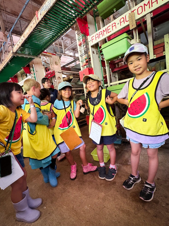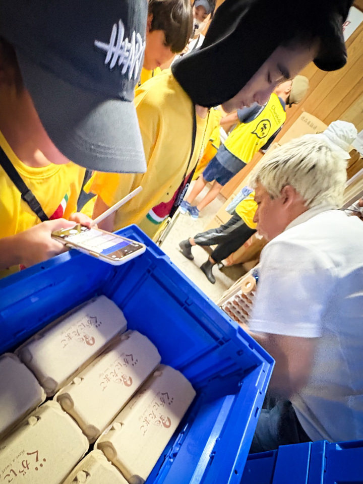 卵のパッキング工場の見学もしました。想像以上に山積みにされた卵の光景に、子どもたちだけでなく先生たちも思わずびっくり!