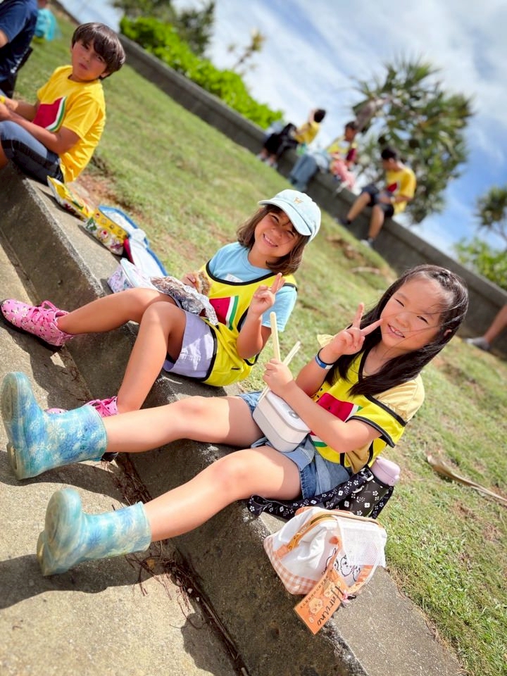 養鶏場見学でたくさん歩いたので、子どもたちからは「疲れた~!」の声も。バスで帰路につく途中、あやはし海中道路のロードパークに立ち寄り、みんなでお弁当を食べました。心地よい潮風に包まれながら、海を眺めて食べるご飯は格別!子どもたちは元気を取り戻し、笑顔いっぱいでお弁当を頬張っていました。